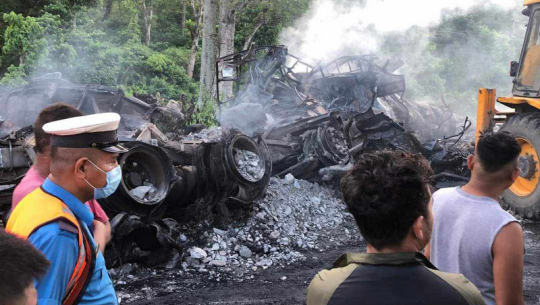 मकवानपुरमा दुई ट्रक ठोक्किएर आगलागी हुँदा तीनजनाको मृत्यु