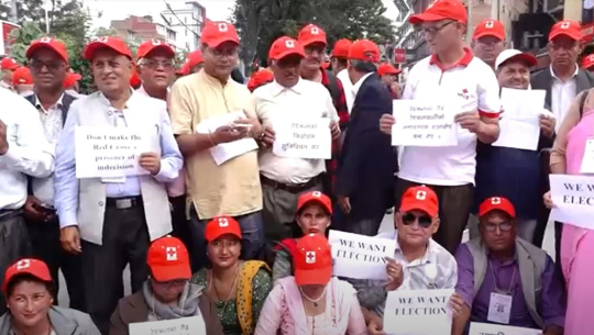 रेडक्रसको तत्काल निर्वाचनको माग गर्दै काठमाडौँमा प्रदर्शन