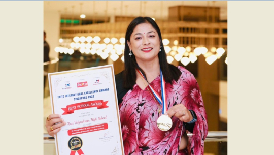 धनगढीः धनगढीको एक्सिस विद्याश्रमलाई सिंगापुरमा बेष्ट स्कुल अवार्ड दिइएको छ। एक्जिटो एजुकेसन अष्ट्रेलियाको आयोजना, एक्जिटो इभेन्ट्सको व्यवस्थापन तथा अनुजा मिडिया नेपालको संयोजनमा सिङ्गापुरमा सम्पन्न कार्यक्रममा एक्सिस विद्याश्रमलाई बेष्ट स्कुल अवार्ड २०२३ बाट सम्मानित गरिएको हो।