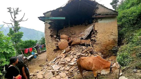 बाजुराः  अविरल वर्षाले बाजुरामा  एक घर भत्किएको छ। उक्त घर भुकम्पले चिरा परेकोले भारि वर्षापछि भत्किएको हो।