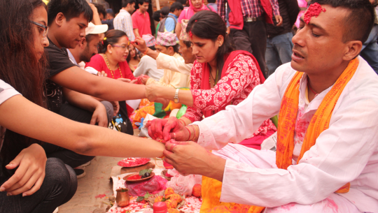 काठमाडौंः प्रत्येक वर्ष श्रावण शुक्ल पूर्णिमाका दिन मनाइने रक्षाबन्धन, जनै पूर्णिमा (ऋषि तर्पणी) पर्व आज देशभर नव यज्ञोपवीत एवं रक्षाबन्धन धारण गरेर मनाइँदै छ।