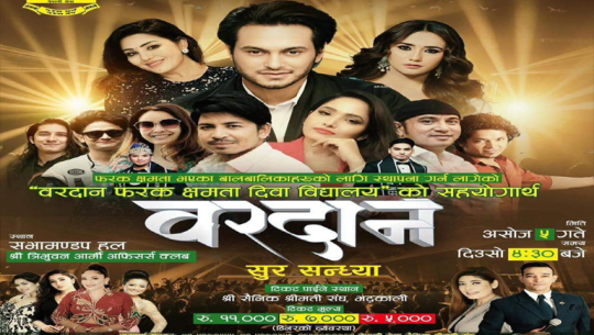 बरदान फरक क्षमता दिवा विद्यालयको सहयोगार्थ हुने कार्यक्रम सैनिक मुख्यालय जङ्गी अड्डामा रहेको त्रिभुवन आर्मी अफिसर्स क्लबस्थित सभामण्डप हलमा सम्पूर्ण तयारी भएको हो। उक्त कार्यक्रमलाई ‘बरदान सुर–सन्ध्या’ नामाकरण गरिएको छ।