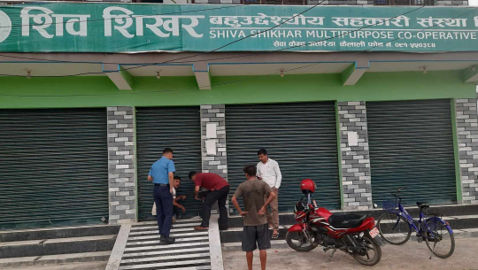 धनगढीः कैलालीको अत्तरियामा रहेको शिव शिखर बहुउद्देश्यीय सहकारी संस्थामा तालाबन्दी गरिएको छ। गोदावरी नगरपालिका–१ मा रहेको शिव शिखर सहकारीमा सोमवार तालाबन्दी गरिएको हो। शिव शिखर सहकारीलाई भूमि व्यवस्था, सहकारी तथा गरिबी निवारण मन्त्रालयको मन्त्रीस्तरीय निर्णय अनुसार साउन २५ गते समस्याग्रस्त घोषणा गरिएको थियो।