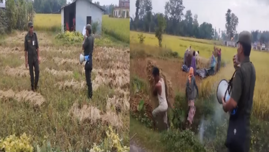 धान नकाट्न सूचना दिँदै खेतखेतमा पुग्यो धनगढी नगर प्रहरी