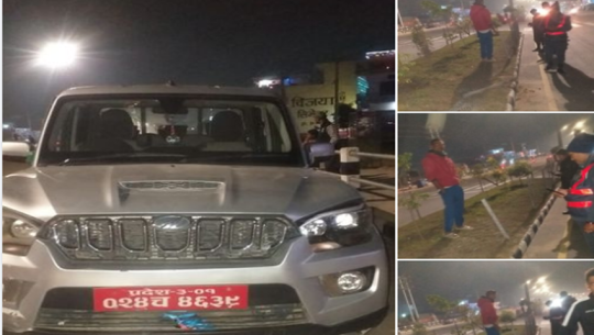 धनगढी छ लेनमा तारजाली तोडेको गाडी प्रहरी नियन्त्रणमा