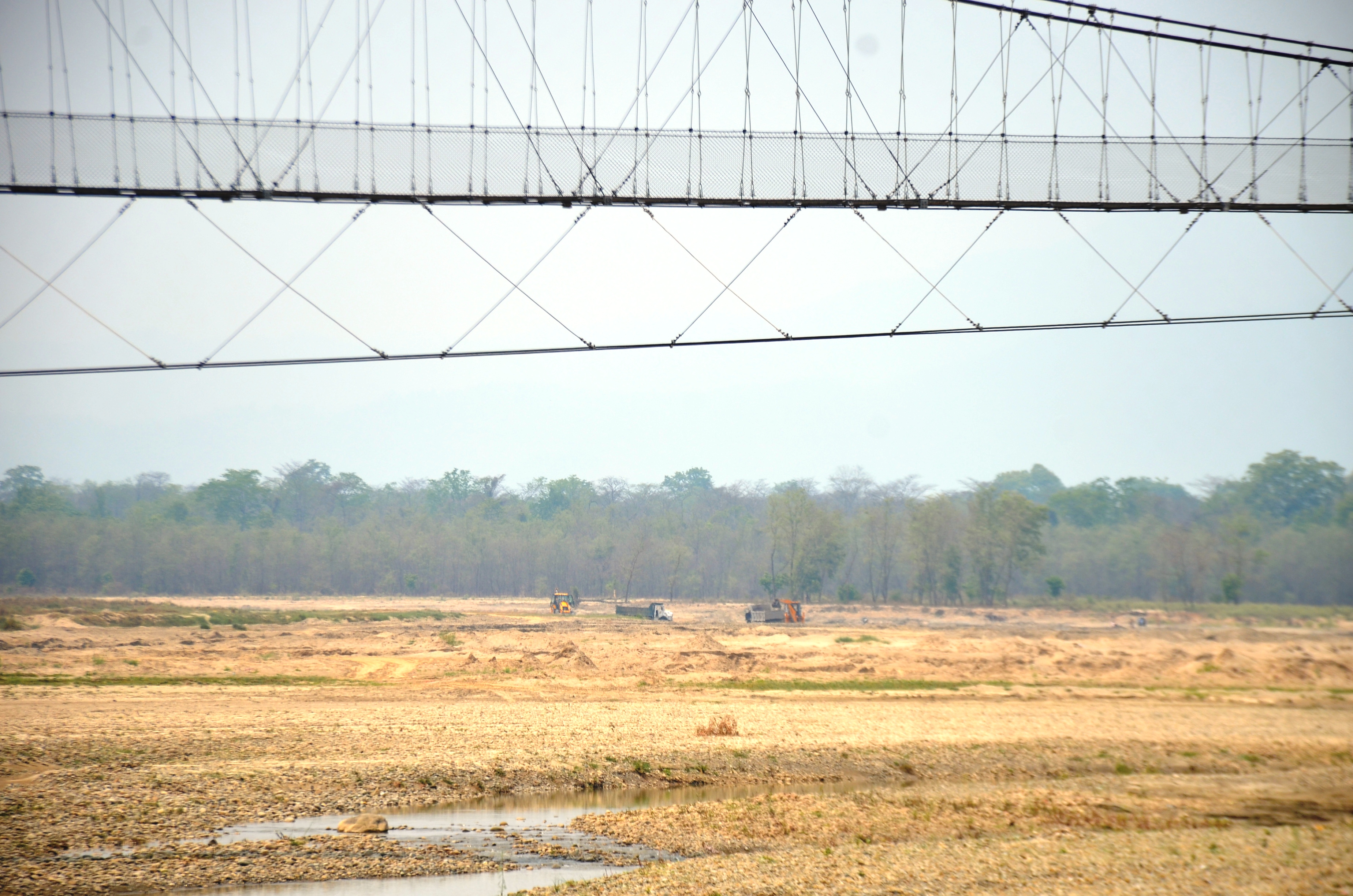 गोदावरीमा मापदण्ड विपरीत खुटिया नदीको दोहन, झोलुङ्गे पुल जोखिममा