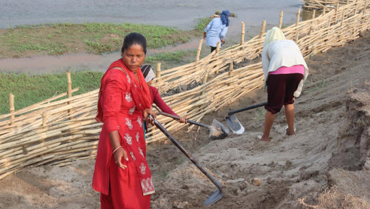कञ्चनपुरमा भूक्षय नियन्त्रणमा जैविक तटबन्ध प्रभावकारी २०८१ जेठ १६, ११:०० खबर संवाददाता कञ्चनपुरः कञ्चनपुरमा बाँसको प्रयोग गरी भूक्षय नियन्त्रण गर्न निर्माण गरिँदै आएको जैविक तटबन्ध प्रभावकारी हुँदै गएको छ। थोरै लागतमा निर्माण हुने जैविक तटबन्धबाट खेतीयोग्य जग्गा नदीले कटान गरी बगाउने कार्य नियन्त्रण हुन थालेको छ। जैविक तटबन्ध प्रभावकारी हुन थालेपछि स्थानीय तहहरूले दातृ निकायसँग सहकार्य गरी काम अगाडि बढाउँदै आएका छन्। जिल्लाका दोदा, वनहरा, सनवोरालगायत नदीमा दशकअघिदेखि जैविक तटबन्ध निर्माण गर्ने कार्य हुँदै आएको छ। हाल राष्ट्रिय समाज कल्याण सङ्घ एनएनएसडब्लुए ले ‘मर्सिकोर’को सहयोगमा सञ्चालन हुँदै आएको ‘एमरेड परियोजना’अन्तर्गत पालिकासँग सहकार्य गरी जैविक तटबन्ध निर्माण गर्दै आएको छ। यसअघि नेपाल रेडक्रस सोसाइटीले परियोजनासँगको सहकार्यमा जैविक तटबन्ध निर्माण गर्दै आएको थियो। चालु आर्थिक वर्षमा शुक्लाफाँटा नगरपालिकासँगको लागत साझेदारीमा कल्याण सङ्घले एमरेड परियोजनाअन्तर्गत तीन सय मिटर जैविक तटबन्ध निर्माण गरेको छ। नगरपालिकाको वडा नं ११, २ र ३ भएर बग्ने सनवोरा नदीमा जैविक तटबन्ध निर्माण गरिएको छ। एमरेड परियोजनाका कार्यक्रम संयोजक महेश घिमिरेका अनुसार नगरपालिका र नेपाल राष्ट्रिय समाज कल्याण सङ्घको सहकार्यमा जैविक तटबन्ध निर्माण गरिएको हो। कटानको उच्च जोखिममा रहेको वडा नम्बर ११ कलुवापुरमा एक सय, वडा नम्बर २ मा एक सय र ३ मा एक सय मिटर जैविक तटबन्ध निर्माण गरिएको छ। जैविक तटबन्ध निर्माणका लागि नगरपालिकाको तर्फबाट एक लाख ७९ हजार, प्रधानमन्त्री रोजगार कार्यक्रमअन्तर्गत एक सय २६ दिनको रोजगारीवापत दक्ष र अदक्ष कामदारको ८३ हजार ज्याला ब्यहोरिएको छ। यसैगरी जनताको तटबन्धबाट ६ हजार तीन सय प्लाष्टिकका बोरा सहयोग गरिएको छ। स्थानीय समुदायले एक लाख २६ हजार बराबरको श्रमदान गरेका छन्। परियोजनाको तर्फबाट एक लाख ७२ हजार रकम व्यहोरिएको छ। पुर्नवास नगरपालिका–७ परासन र वडा नं ९ सीताबस्तीको दोदा नदीमा नगरपालिकासँगको सहकार्यमा परियोजनाअन्तर्गत पाँच सय मिटर जैविक तटबन्ध निर्माण गरिएको छ। विक तटबन्ध निर्माणका लागि नगरपालिकाले तीन लाख ३९ हजार, प्रधानमन्त्री रोजगार कार्यक्रमबाट पाँच सय २० दिनको रोजगारीअन्तर्गत तीन लाख ४७ हजार र परियोजनाको तर्फबाट तीन लाख रकम व्यहोरिएको छ। तटबन्ध निर्माण गर्न स्थानीय समुदायले एक लाख १० हजार बराबरको श्रमदान गरेको छ। जैविक तटबन्ध निर्माण गरिएका क्षेत्रका समुदायलाई सङ्गठित गरी खाली रहेको बगरमा उखुखेती प्रवर्द्धनमा सहयोग गरेका छौँ, संयोजक घिमिरले भने, ‘परियोजनाअन्तर्गत शुक्लाफाँटामा सात बिघामा २५ परिव