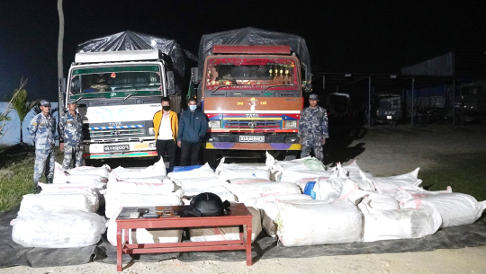 झापाः सशस्त्र प्रहरी बलले एक हजार ६३६ किलो गाँजासहित झापाबाट दुईजनालाई पक्राउ गरेको छ। प्रहरीले सो परिमाणको गाँजासहित बुद्धशान्ति गाउँपालिका–४ मेची राजमार्गबाट दुई  ट्रकसहित दुवैजनालाई नियन्त्रणमा लिएको हो।