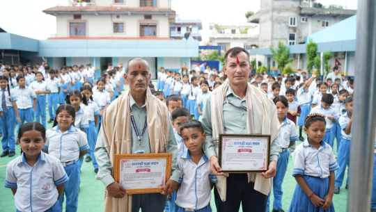 विद्यालयले लामो समयसम्म शिक्षण सेवामा कार्यरत शिक्षक टेकबहादुर सेटी र गोविन्द रोकायालाई सम्मान गरिएको विद्यालयले जनाएको छ।