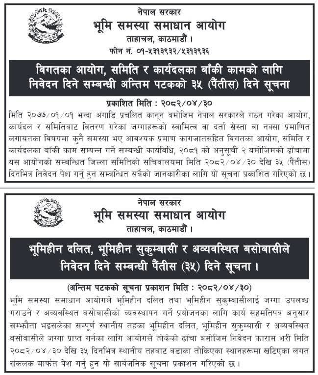 On Friday, the commission, based in Tahachal, Kathmandu, published a 35-day final notice targeting landless Dalits, landless squatters, and unorganized settlers across all local levels.