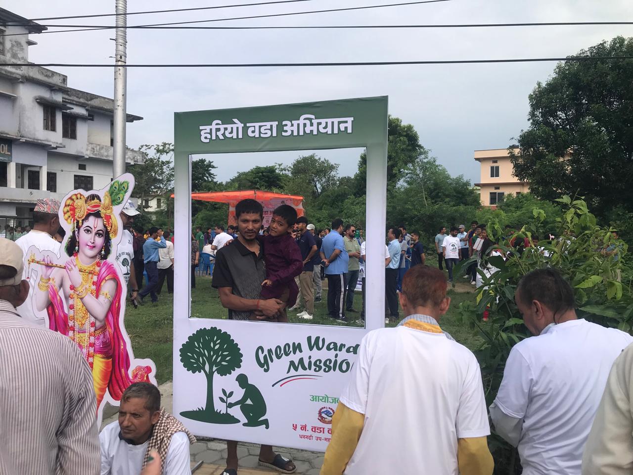 ‘एक घर, दुई बोट रोपौ’ भन्ने नारासहित ‘हरियो वडा अभियान’ थालिएको वडा अध्यक्ष गजेन्द्र शाहीले बताए। उनका अनुसार वडा कार्यालयले प्रत्येक घरधुरीलाई दुई वटा बिरुवा वितरण गरेको हो।