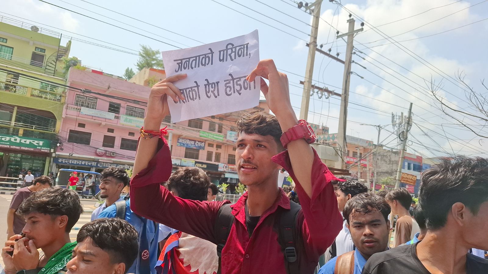 मुख्यमन्त्री कार्यालय अगाडी भएको प्रदर्शन भेटिएका युवाहरूले संघ तथा प्रदेश सरकार विरुद्ध नारावाजी गरेका छन्। सरकारमा जुनसुकै दल र नेता गए पनि भ्रष्टाचार नियन्त्रण नभएको भन्दै युवाहरूले तीव्र असन्तुष्टि पोखेका छन्।