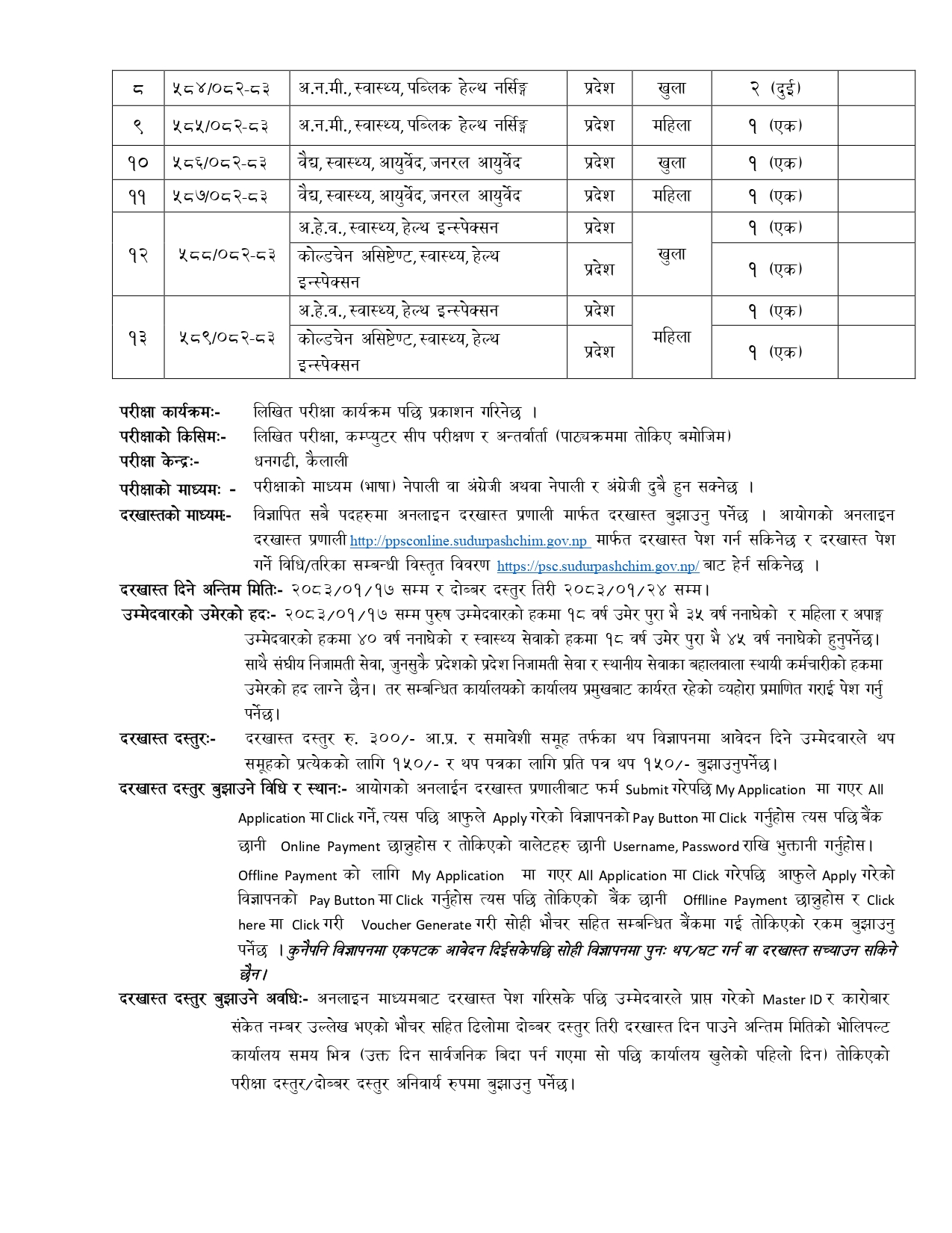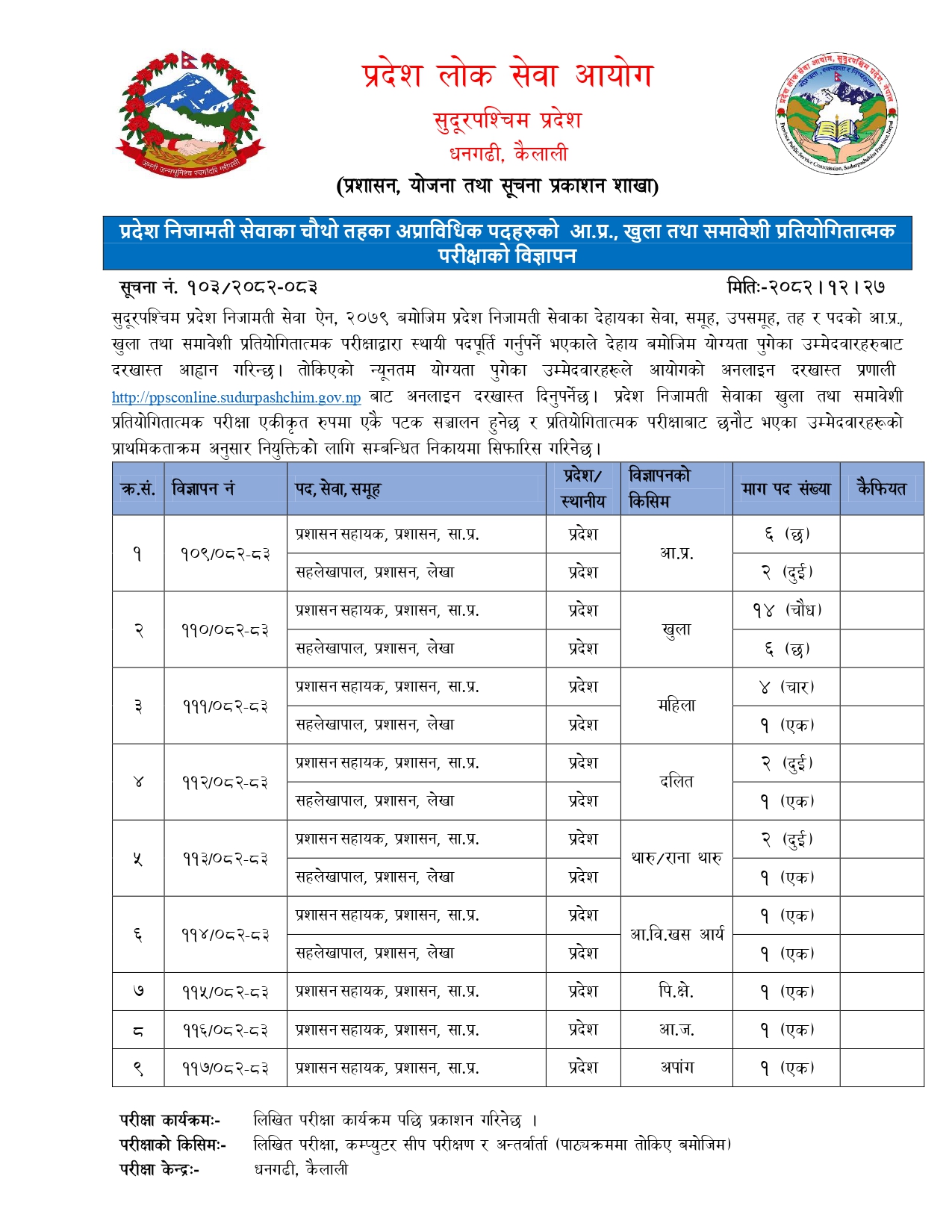 सुदूरपश्चिम प्रदेश लोकसेवाले खोल्यो ७१ पदमा विज्ञापन