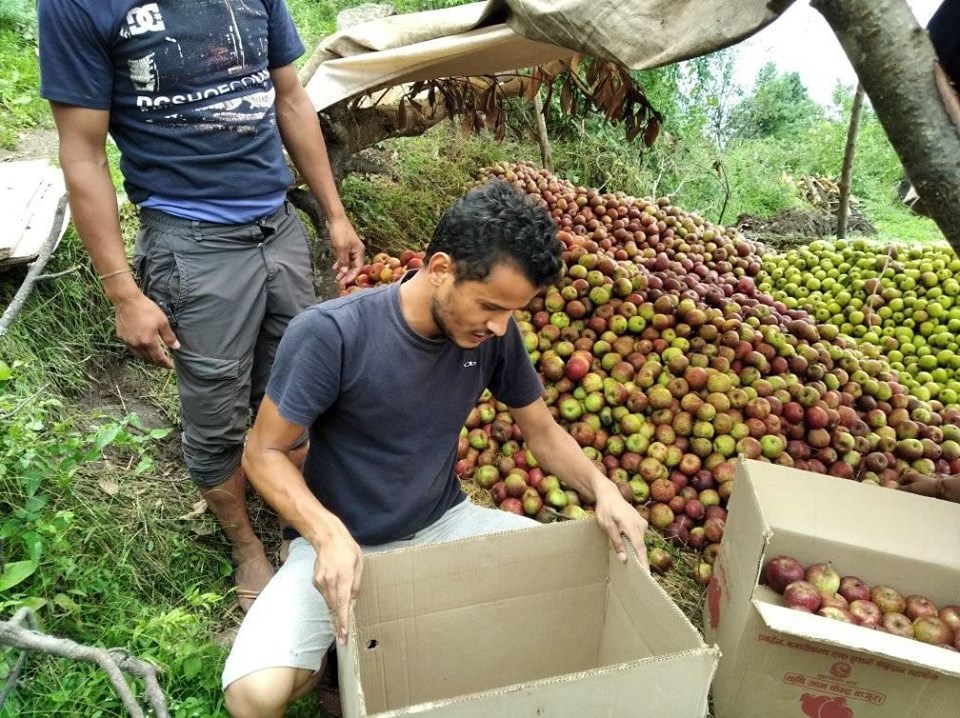 बाजुरामा स्याउँको मूल्य प्रतिकिलो १५ रुपैँया, विक्री नहुँदा बारीमै खेर जाँदै