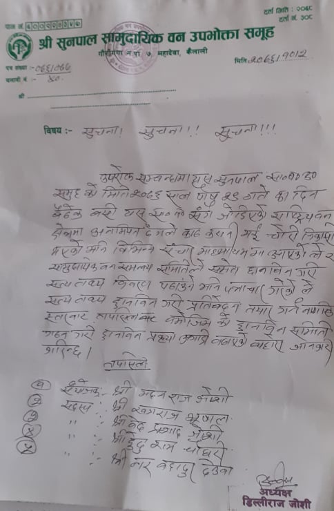 कैलालीको सुनपाल सामुदायिक वनद्वारा गठित छानविन समिति समेत विवादित
