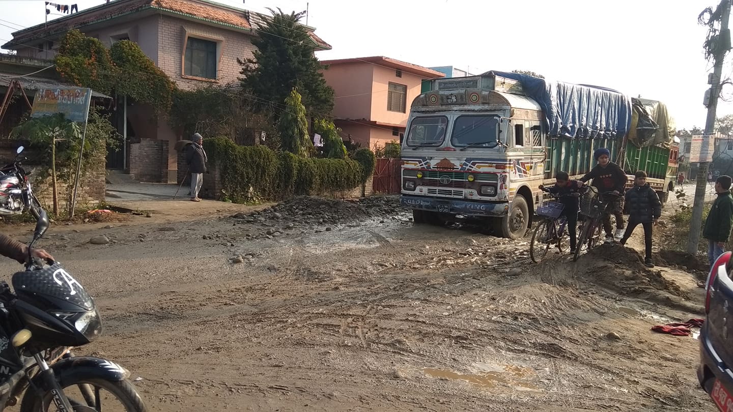 हिउँदे बर्षाले धनगढीका सडक हिलाम्य भएपछि आवतजावतमा सास्ती