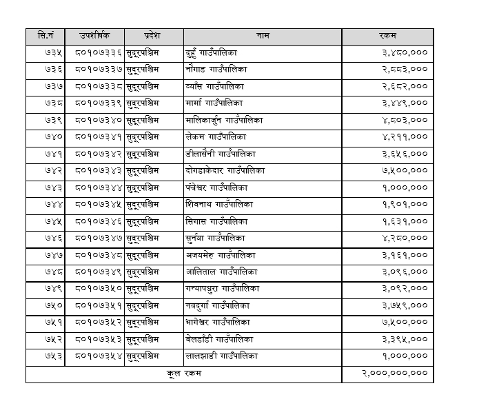 प्रधानमन्त्री रोजगार कार्यक्रम : सुदूरपश्चिमका ८८ स्थानीय तहले पाए, ३६ करोड