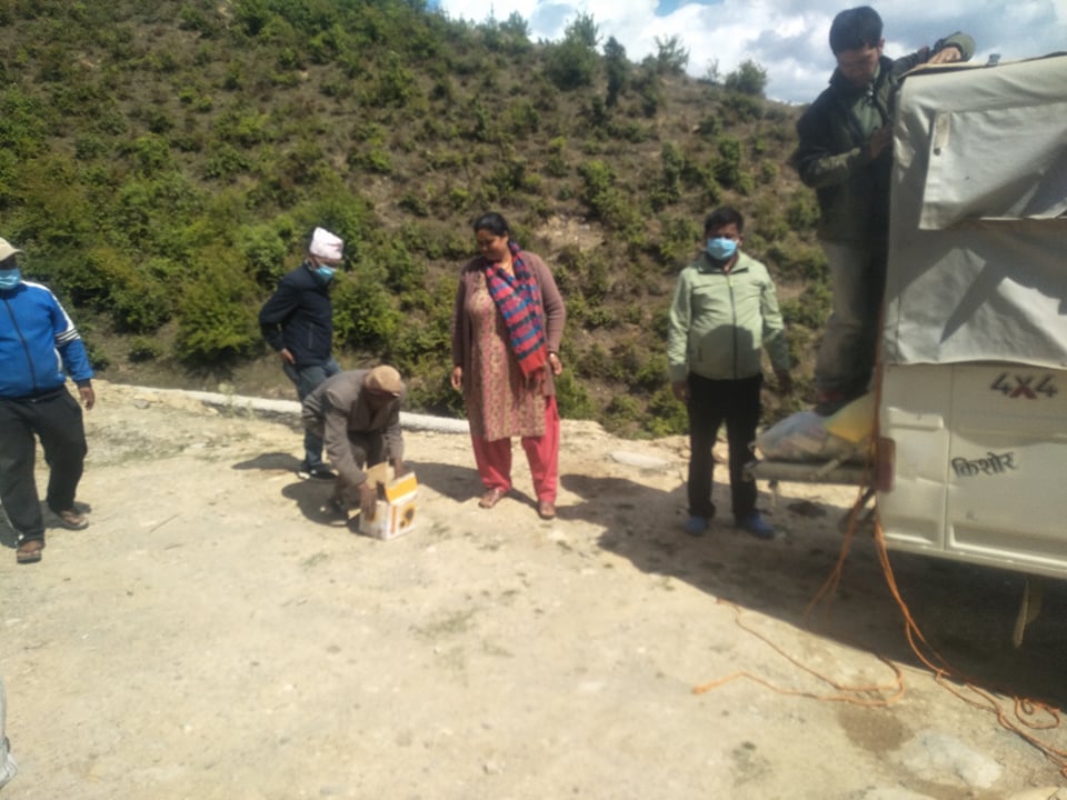 जोशीका अनुसार केदारस्युँ गाउँपालिकालाई साढे ७ क्वीन्टल चामल, ५० केजी दाल, साढे ३७ लिटर तेल, ७५ केजी नुन गाउँपालिका अध्यक्ष इन्द्र भण्डारी र उपाध्यक्ष निशा धामीलाई, छबिसपाथिभेरा गाउँपालिकालाई साढे ७ क्वीन्टल चामल, ५० केजी दाल, साढे ३७ लिटर तेल, ७५ केजी नुन गाउँपालिकाका उपाध्यक्ष राधिका रताला जोशीलाई र जयपृथ्वी नगरपालिकालाई १५ क्वीन्टल चामल, १ क्वीन्टल दाल, ७५ लिटर तेल, १५० केजी नुन मेयर विरेन्द्र खड्कालाई हस्तान्तरण गरिएको हो।