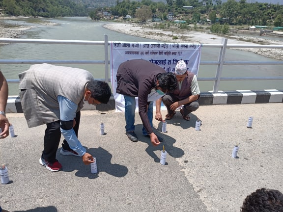 धनगढी : वषौँदेखि अलपत्र पश्चिम सेती जलविद्युत आयोजना निर्माणको माग गर्दै डोटीमा ७ सय ५० टुकी बालिएको छ। पश्चिम सेती निर्माणका लागि विभिन्न दबाब मुलक कार्यक्रम गर्दै आएको बोलन्या थली धनगढीले आज दिउँसो डोटीमा ७ सय ५० टुकी बालेको हो।