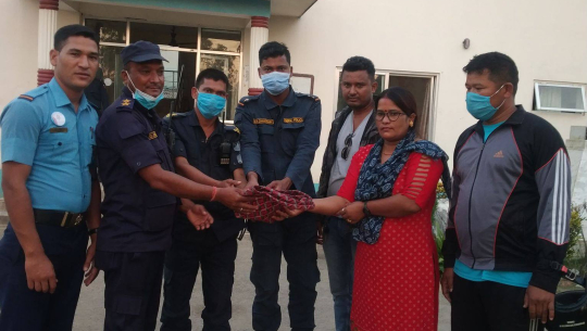 धनगढीः इलाका प्रहरी कार्यालय टीकापुरका प्रहरीले भेटाएको करिब एक लाख नगद, मोबाइल र गहना सम्बन्धित व्यक्तिलाई बुझाइएको छ ।