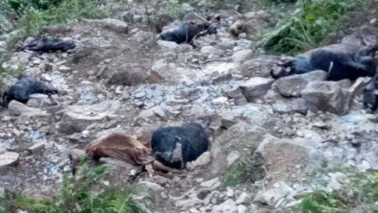 शुक्रबार जिल्लाको पुर्चौडी नगरपालिका वडा नम्बर ६ को सिगास सामुदायिक वन क्षेत्र अन्तरगतको भेरीखोला मुहानमा १४ वटा गाई मृत अवस्थामा भेटिएका थिए