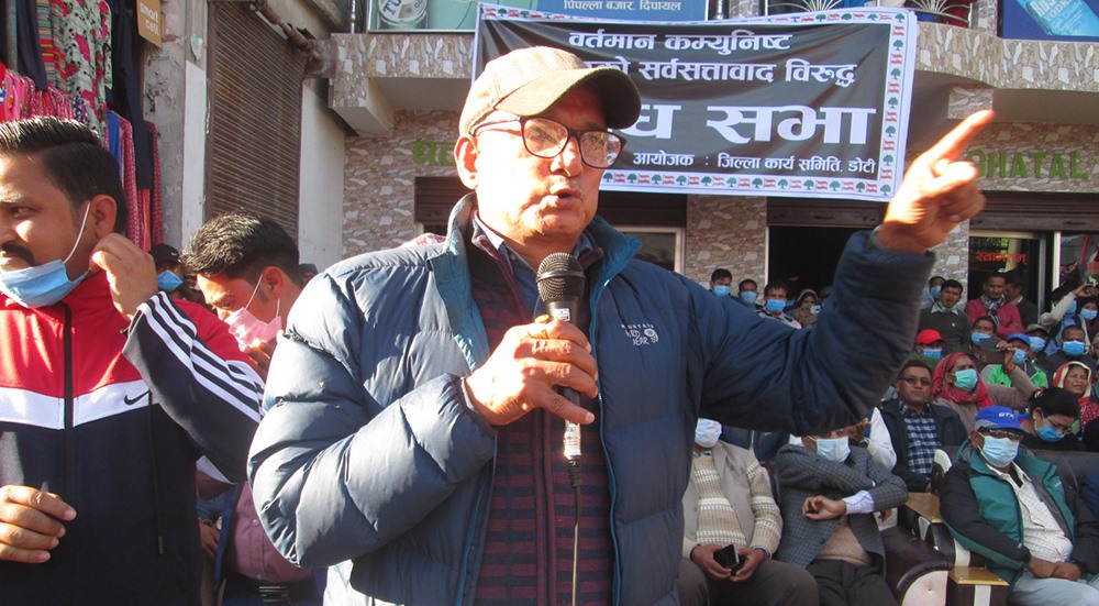 सुदूर पहाडको डोटीको दिपायलमा हजारौंको संख्यामा उपस्थित विरोधसभालाई सम्बोधन क्रममा नेपाली काँग्रेसका केन्द्रीय सदस्य एवं पूर्वमन्त्री वीरबहादुर बलायरले पनि स्वास्थ्य सतकर्ता अपनाउन सायद त्यति उचित ठानेनन् ।