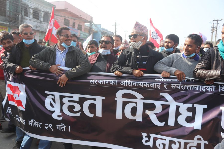 धनगढीः नेपाली काँग्रेसले गरेको देशव्यापी सरकार विरोधी प्रदर्शनको क्रममा सोमबार दिउसो सुदूरपश्चिम प्रदेशको अस्थायी राजधानी धनगढीका सडक पनि निकै तात्न पुगे। जहाँ नेताहरूले सत्ताधारी नेताहरूको खेदो खन्नमा आफ्नो अधिकांश समय खर्चिए ।
