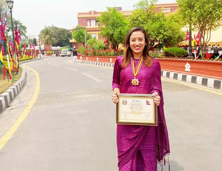 पदक पाएपछि उनले उक्त मानपदक नगरवासीमा सर्मपित गरेको बताएकी छिन्। ‘यस यात्रासम्म आइपुग्न अहम् भूमिका खेल्ने मेरो परिवार, पार्टीका अभिभावक, गुरुवर्ग तथा मित्रहरू प्रति हार्दिक आभारी छु’ उनले आफ्नो फेसबुकमा लेखेकी छिन्।