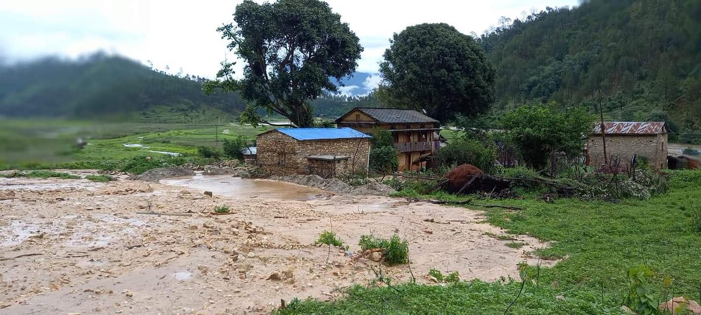 स्थानीय जीवन बोहराले गाउँपालिकाको वडा नम्बर ४ खैरेखोलामा सोमबार बाढी आएको बताए। सडक निर्माणका क्रममा थुपारिएको माटो तथा ढुङ्गा किसानको मकै बारीमा बाढीले पुर्‍याएकाे उनले बताए।