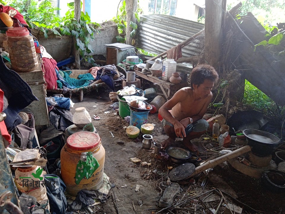 विमानस्थल नजिकै राम्रोसँग चलेको पसल रक्सी खाएर सक्काएपछि उनीहरु मनेहरामा बस्न आएको अमृताले बताइन्। अहिले जहाँ अमृताको भत्केको टहरो छ, त्यो एक कट्ठा जग्गा उनले मजदुरी गरेर १२ वर्ष अगाडि ६२ हजार तिरेर किनेको रहिछन्। त्यो पर्ती जग्गामा उनको भत्किएको टहरो छ। तर जेठो छोराले टिनले छाएको घर बनाएका छन्। मजदुरी गर्ने जेठो छोराले कुनै मतलब नगर्ने, २२ वर्षको कान्छो छोरो घरमै नआउने बताउने अमृतासँग उनका माहिलो मात्रै बस्छन्। जसको मानसिक स्थिती ठिक नभएको उनले बताइन्।