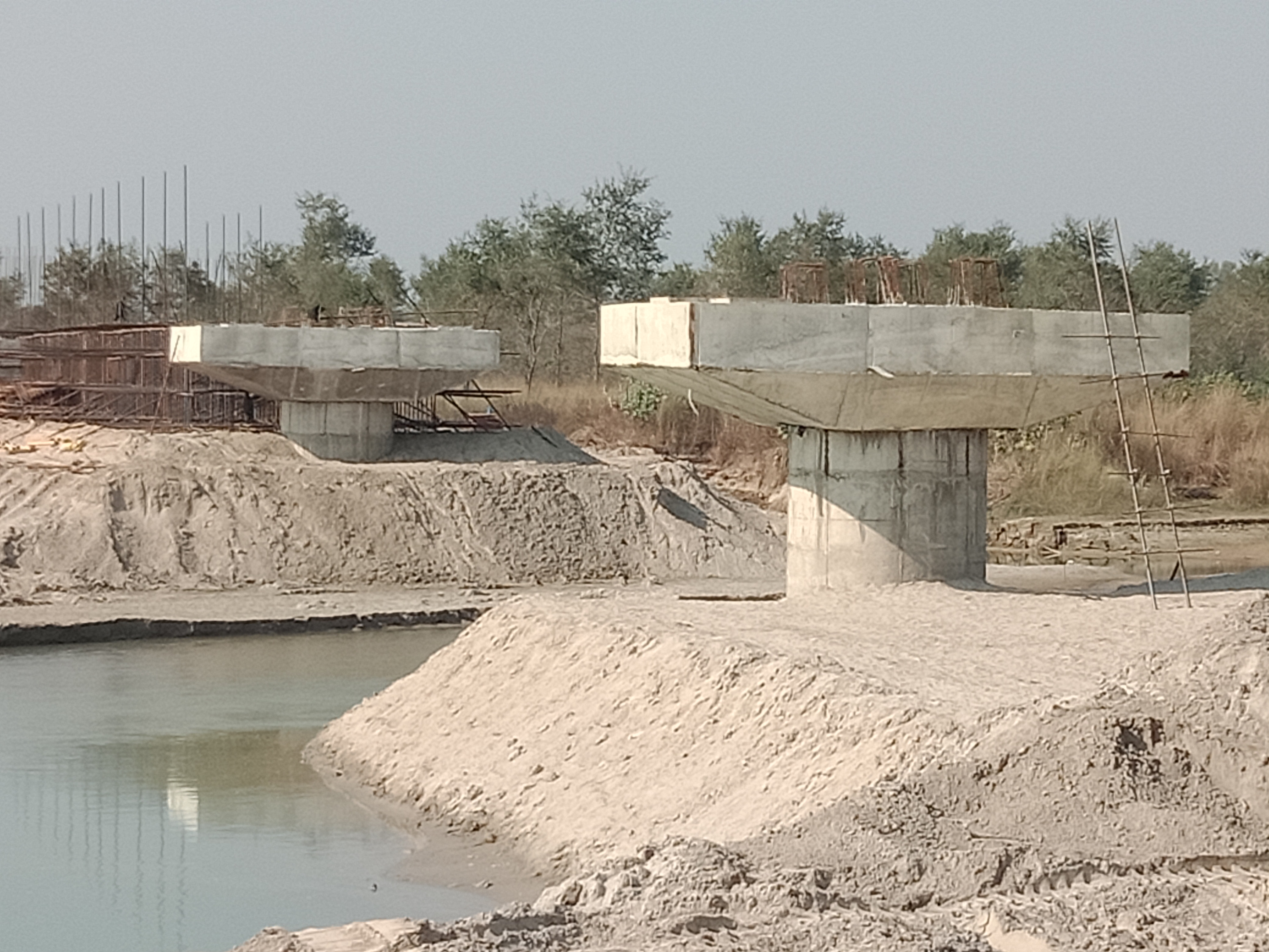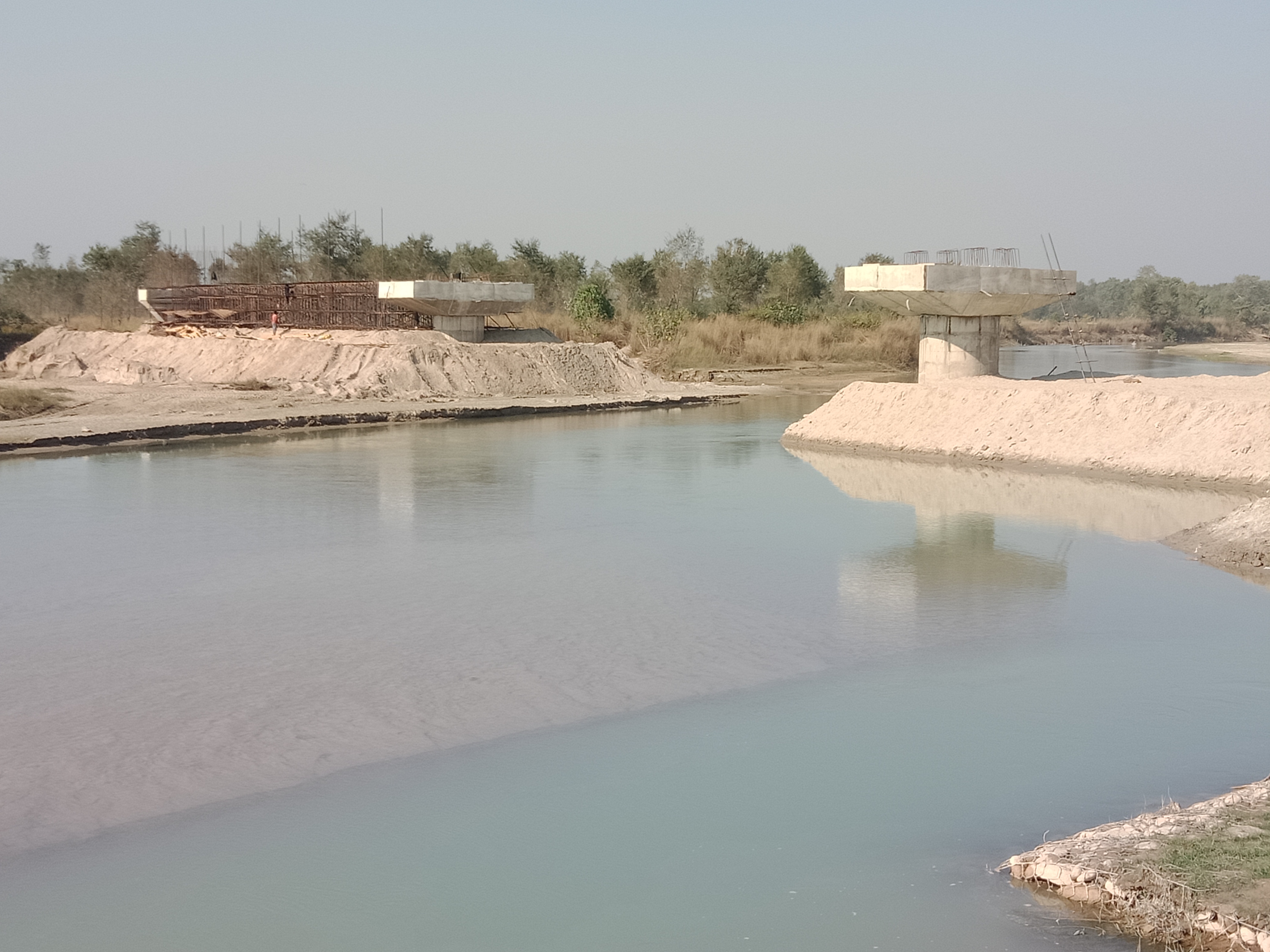 धनगढी– राजघाट जोड्ने पुलको ५ बर्ष हुन लागेपछि पिल्लर र वीम निर्माण