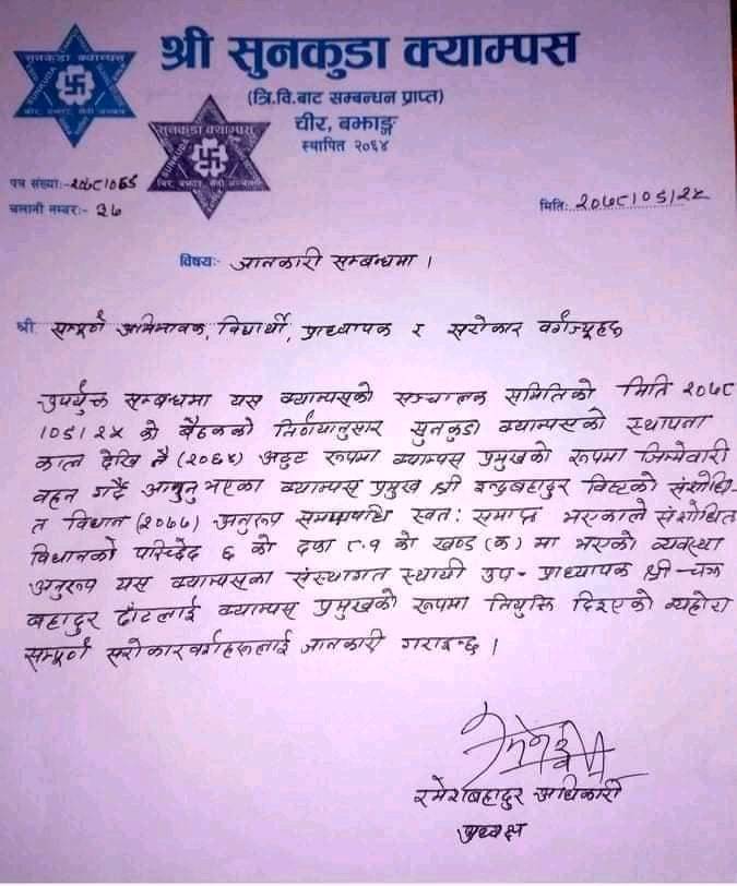 बझाङको सुनकुडा क्याम्पसमा लफडा, लेटरप्याड र छाप चोरेर प्रमुख नियुक्त