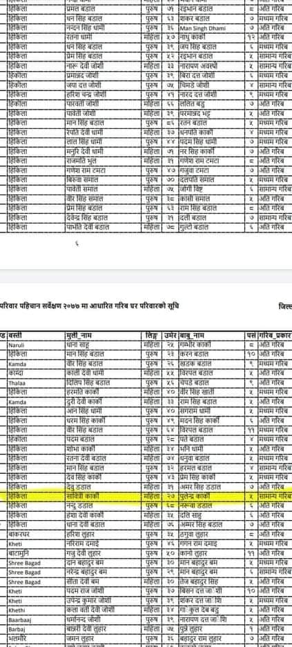 धनगढीः दार्चुलामा गाउँपालिका अध्यक्षकी छोरीको नाम पनि गरिबका सूचीमा राखिएको भेटिएको छ। जिल्लाको दुहुँ गाउँपालिकामा यस्तो भेटिएको हो।