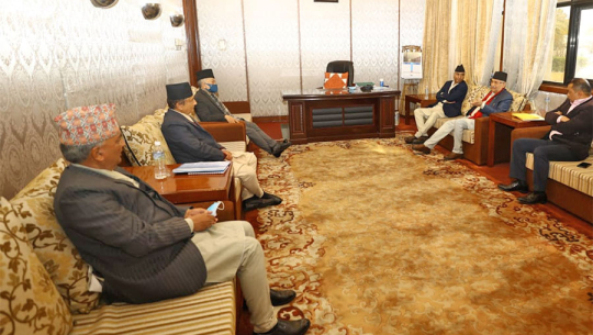 काठमाडौंः सत्तारुढ नेपाली कांग्रेस र नेकपा एमालेका शीर्ष नेताहरूबीच छलफल सुरु भएको छ। अमेरिकी सहयोग परियोजना एमसीसीबारे सत्तारुढ गठबन्धनबीच सहमति जुट्न नसकेको बेला प्रधानमन्त्री शेरबहादुर देउवासहित दुई दलका नेताहरुबीच छलफल सुरु भएको हो।