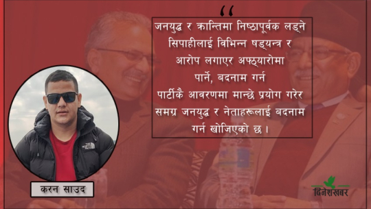 जनयुद्ध र क्रान्तिमा निष्ठापूर्वक लड्ने सिपाहीलाई विभिन्न षड्यन्त्र र आरोप लगाएर अफ्ठ्यारोमा पार्ने, बदनाम गर्न पार्टीकै आवरणमा मान्छे प्रयोग गरेर समग्र जनयुद्ध र नेताहरूलाई बदनाम गर्न खोजिएको छ। जनयुद्धमा उठाएको संसदीय व्यवस्था विरुद्धको मुद्दा आज निकम्मा सावित भएको छ।