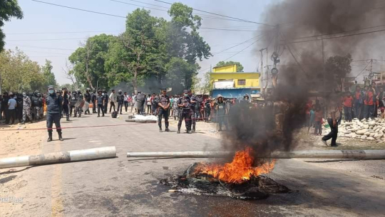 धनगढीः कञ्चनपुरमा बसको ठक्करबाट एक महिलाको मृत्यु भएपछि चक्काजाम गरिएको छ। सोमबार जिल्लाको भीमदत्त नगरपालिका–५ शान्ति निकेतन चोकमा बसको ठक्करले दिँदा मन्जु बुडालको ज्यान गएको थियो। साईकलमा सवार उनको घटनास्थलमै मृत्युपछि स्थानीयले चक्काजाम गरेका छन्। उनीहरुले सडकमा टायर समेत जलाइरहेका छन्।