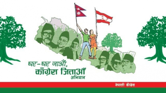 काठमाडौंमा काँग्रेसको ‘घर–घर जाऔँ, काँग्रेस जिताऔँ’ अभियान सुरु