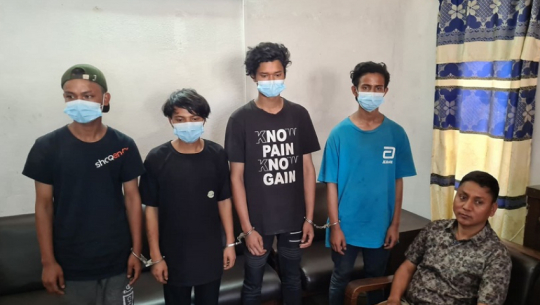 पक्राउ परेका जानकी–९ घर भएका १९ वर्षका मनोज भण्डारी, सोही ठाउँका १९ वर्षीय सुमित साउद, बम बहादुर बोहोरा उर्फ बमे र रोन परियार उर्फ दिलिप दासलाई आज (शुक्रबार) काठमाडौंबाट धनगढी पठाइएको महाशाखाले जनाएको छ। प्रहरीका अनुसार हत्या गरी उनीहरू भारत गएर लुकेर बसेका थिए। काम खोज्न नेपाल भारत सीमामा आएका उनीहरूलाई प्रहरीले बोर्डरबाट बिहीबार (हिजो) पक्राउ गरेको हो।
