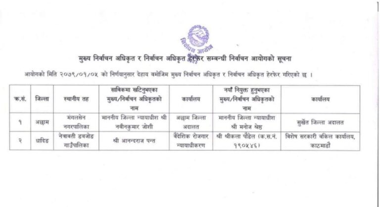 अछामको मंगलसेन नगरपालिकाका निर्वाचन अधिकृत फेरिए