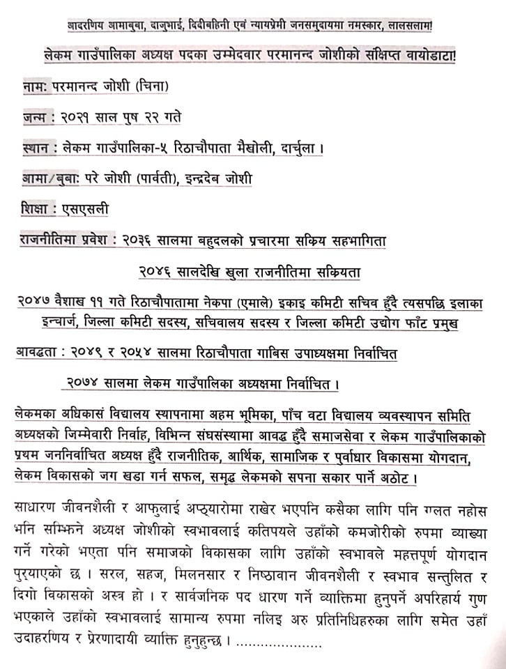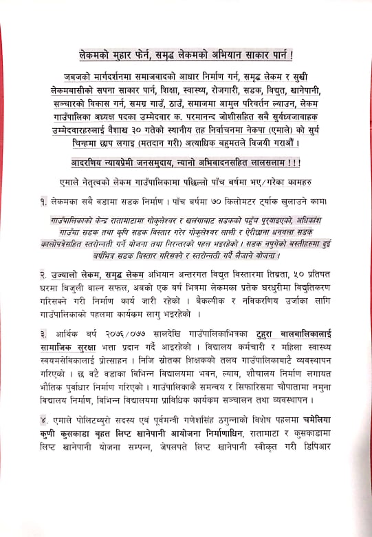 दार्चुलाको लेकमका अध्यक्ष जोशीले सार्वजनिक गरे आफ्नो कार्यकालमा भएका काम