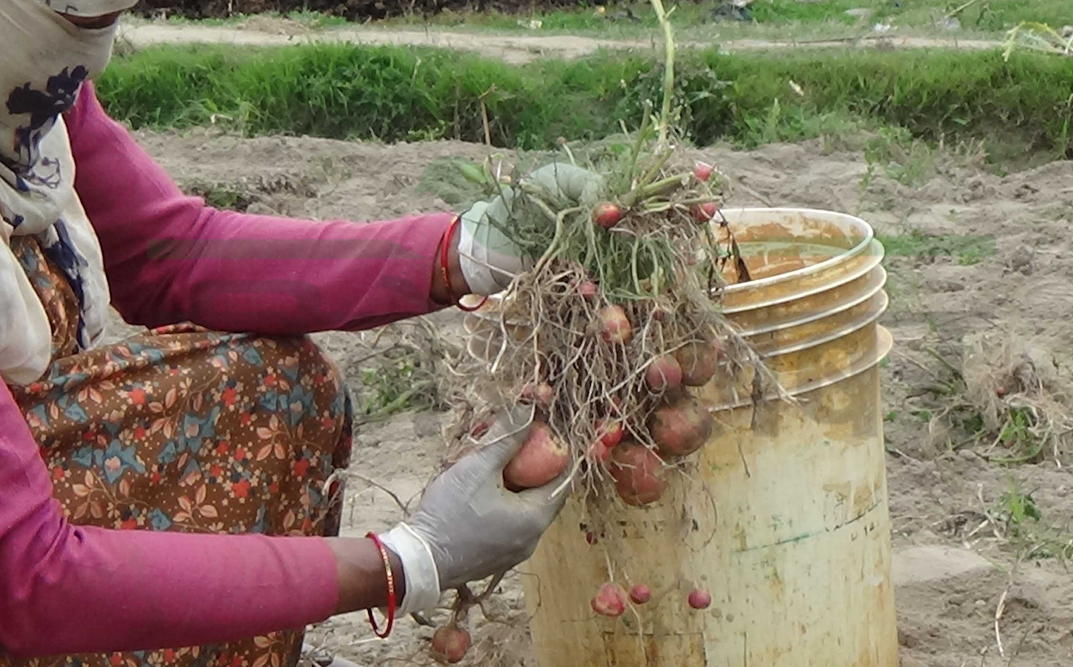 तस्बिरमा देखिएको दृष्य धनगढी उप–महानगरपालिका वडा नम्बर ८ को धनगढी गाउँको हो। त्यो दृष्यले एकछिन हाम्रो ध्यान पनि तान्यो। शनिबार दिउँसोको कुरा हो, त्यहाँ पुग्दा रतिराम चौधरी र उनकी श्रीमती रामदासी बारीमा आलु खन्दै थिए। आलुका जरा उखेल्दै छाट्दै छेउमै राखिएका प्लाष्टिकको बाल्टी र बाटामा जम्मा गर्नमा चौधरी दम्पत्ती व्यस्त देखिन्थ्यो। चौधरी दम्पत्तीको व्यस्तताका बीच हामीले कुराकानी गर्ने अनुमती माग्यौँ। दुवैजना खुसि हुदै एकछिन हामीसँग गफिए।