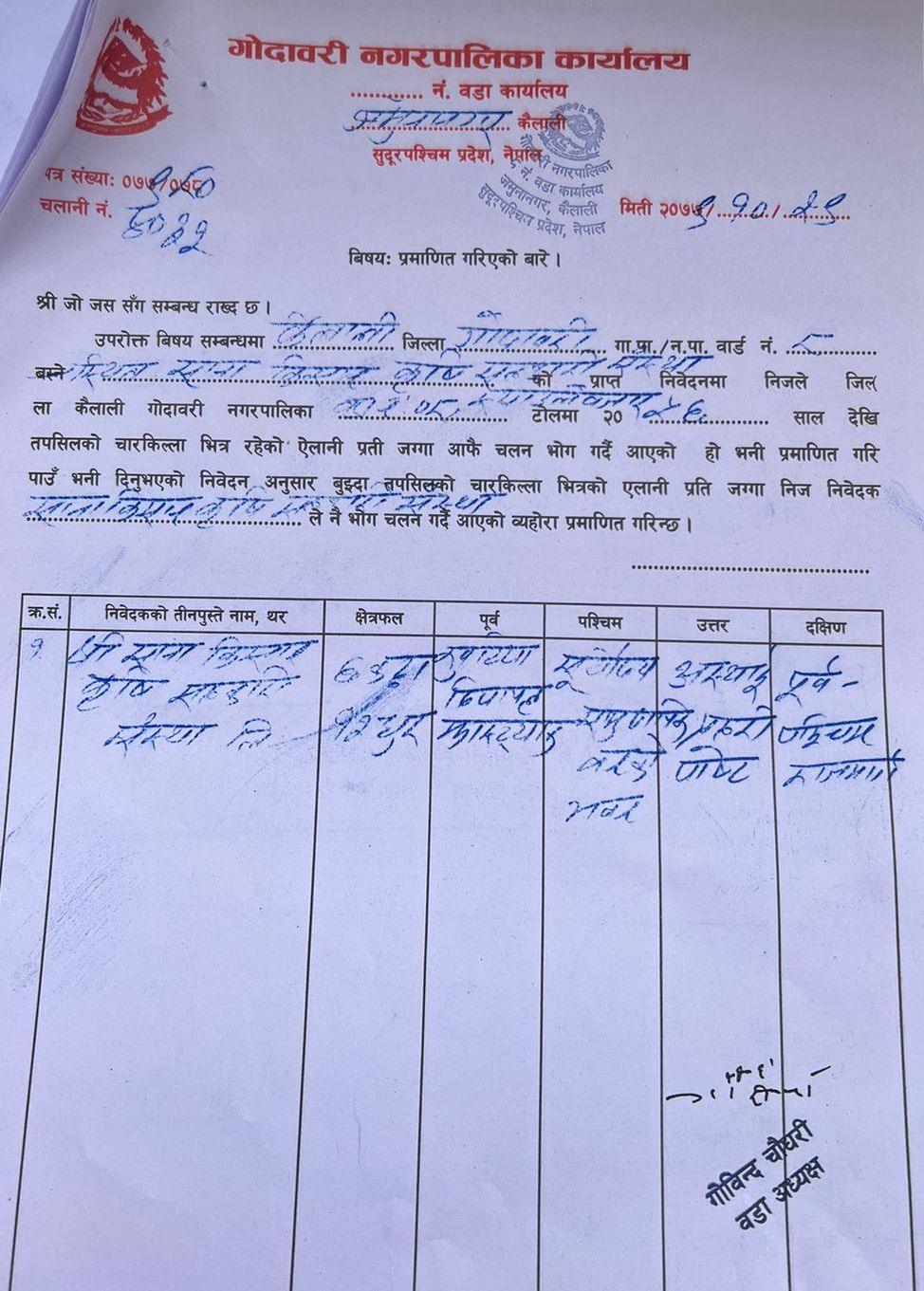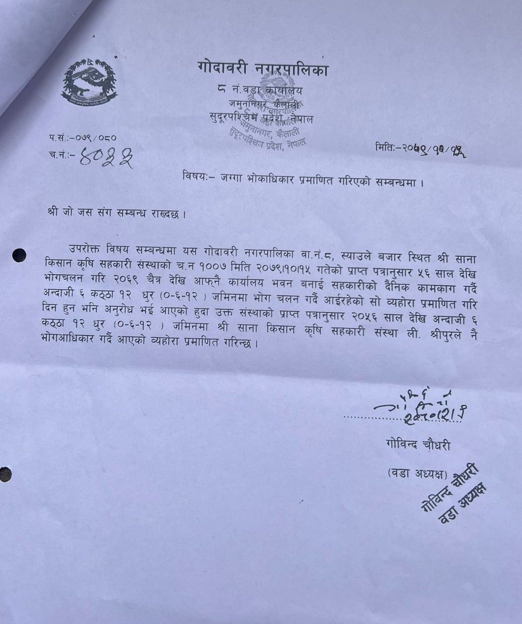 कैलालीको गोदावरीमा वनको जग्गा दर्ता गर्न वडा अध्यक्षकै स्वीकृति