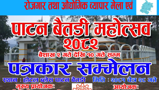 नेपाल च्याम्बर अफ कमर्स बैतडीको आयोजना र क्वालिटी आल्मुनियम स्टिलको मुख्य प्रायोजनमा महोत्सव सञ्चालन हुने च्याम्बर अफ कमर्स बैतडीका अध्यक्ष हरिस प्रशाद जोशीले जानकारी दिए। श्रीकृष्ण मावि पाटनको मैदानमा सञ्चालन हुने महोत्सवमा राष्ट्रिय र स्थानीय स्तरका कलाकारहरुको प्रस्तुति रहने जोशीले बताए। प्रदेशस्तरीय कृषि पर्यटन कला संस्कृति रोजगार तथा औद्योगिक व्यापार मेला एवं पाटन बैतडी महोत्सव वैशाख १० गते सम्पन्न हुने जोशीले जानकारी दिए।