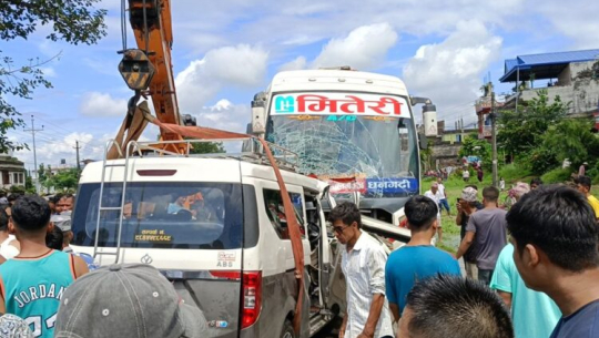 चितवनका प्रहरी प्रमुख गोविन्द पुरीका अनुसार पूर्वपश्चिम राजमार्गअन्तर्गत राप्ती नगरपालिकाको खहरे पुलमा धनगढीबाट काँकडभिट्टातर्फ गइरहेको यात्रुवाहक बस र मकवानपुरबाट नारायणगढ आइरहेको विद्युतीय सवारी साधन आपसमा ठोक्किँदा दुर्घटना भएको हो।