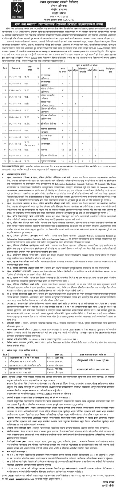 टेलिकमले उप प्रबन्धक, वरिष्ठ इन्जिनियर, वरिष्ठ प्रसासकिय अधिकृत, वरिष्ठ लेखा अधिकृत, टेलिकम इन्जिनियर, ओभरसियर, सहायक लगायतका पदमा कर्मचारी माग गरेको हो।