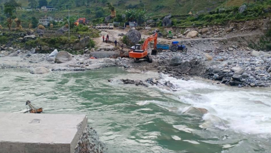 सुरुमा बेलिबिज्र बगाएको ठाँउमा स्थानीयले अस्थायी रुपमा तुइन बनाएर वारपार गर्ने गरेका थिए। पछि नेपाली सेना र स्थानीयको सक्रियतामा नदीमा काठे पुल हालेर खच्चर र मानिस आवतजावत गर्नेसम्म बनाएका छन्।