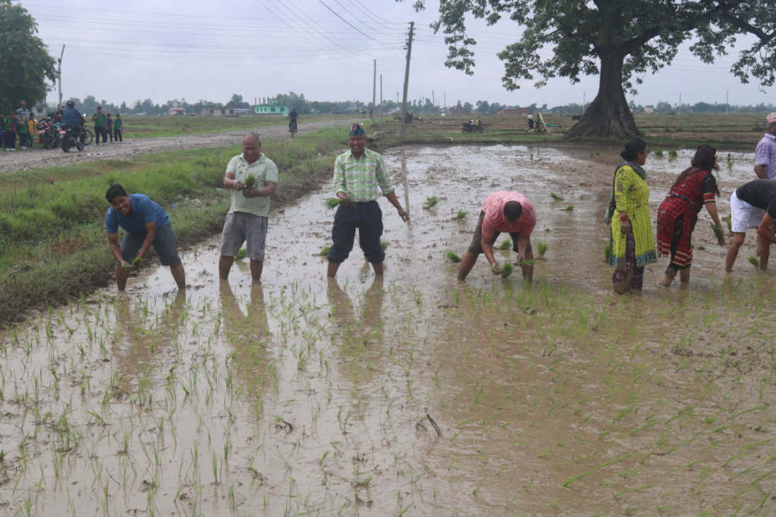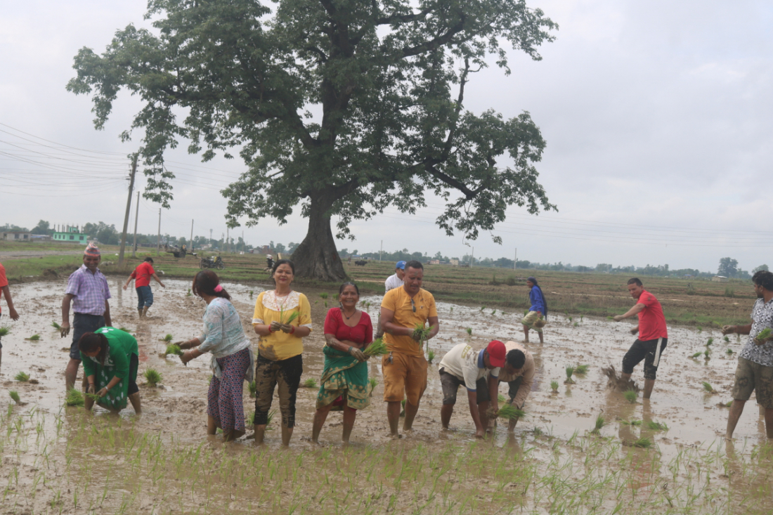 पार्टीका नेताहरूले धान रोप्दै दिवस मनाएका हुन्।