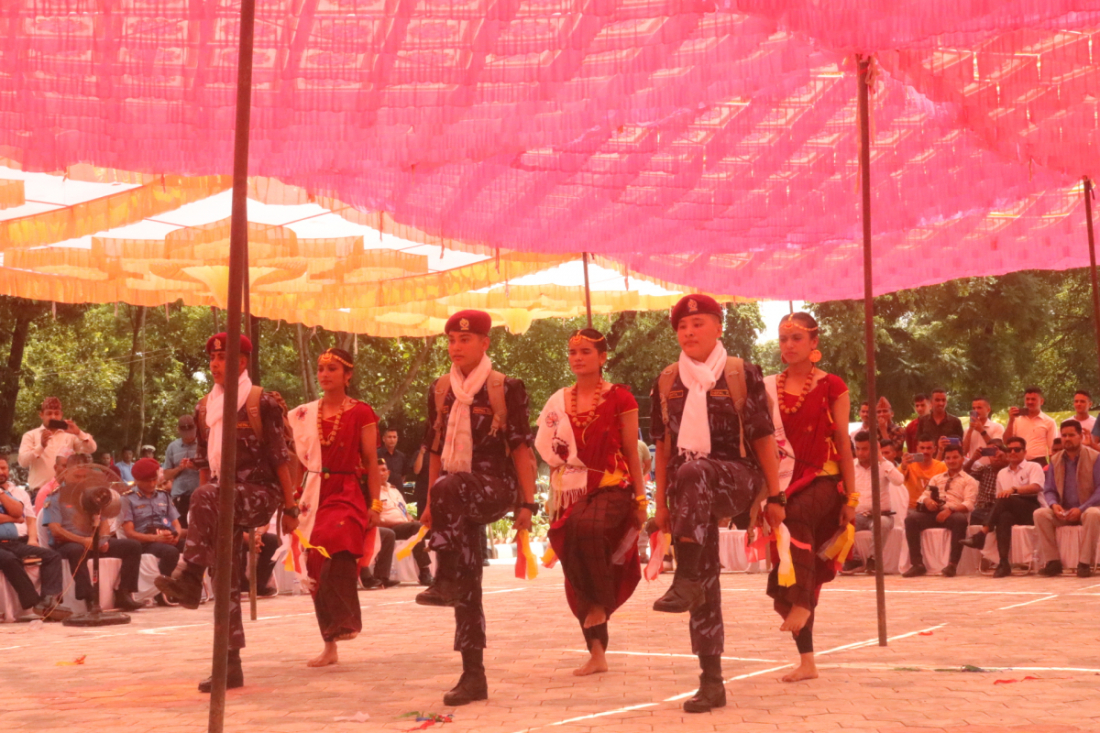 छलिया नृत्य प्रस्तुत गर्दै प्रहरी जवानहरू