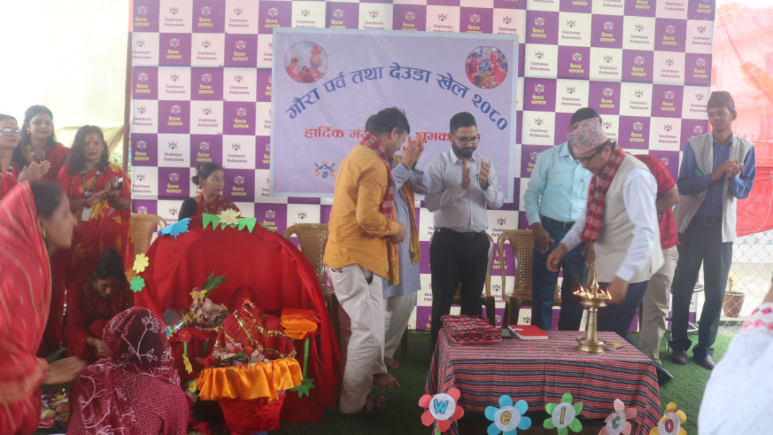 अभिभावक र विद्यार्थीहरूको सहभागितामा गौरा पर्व र डेउडा खेल, २०८० मनाइएको हो।