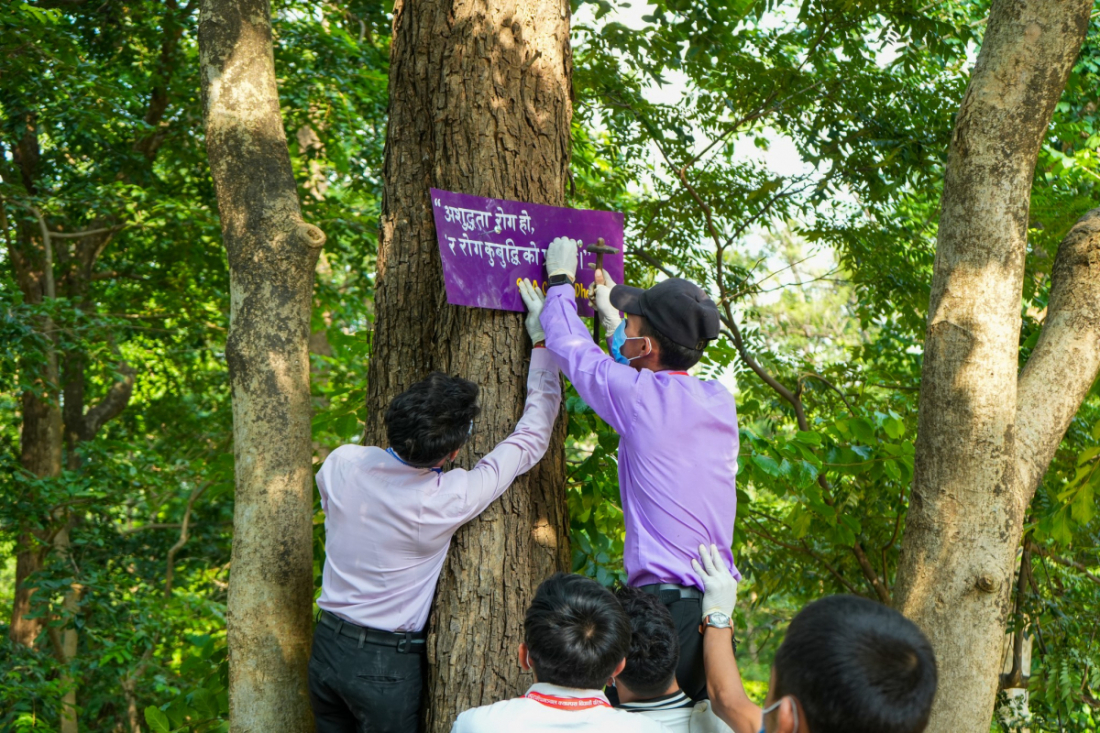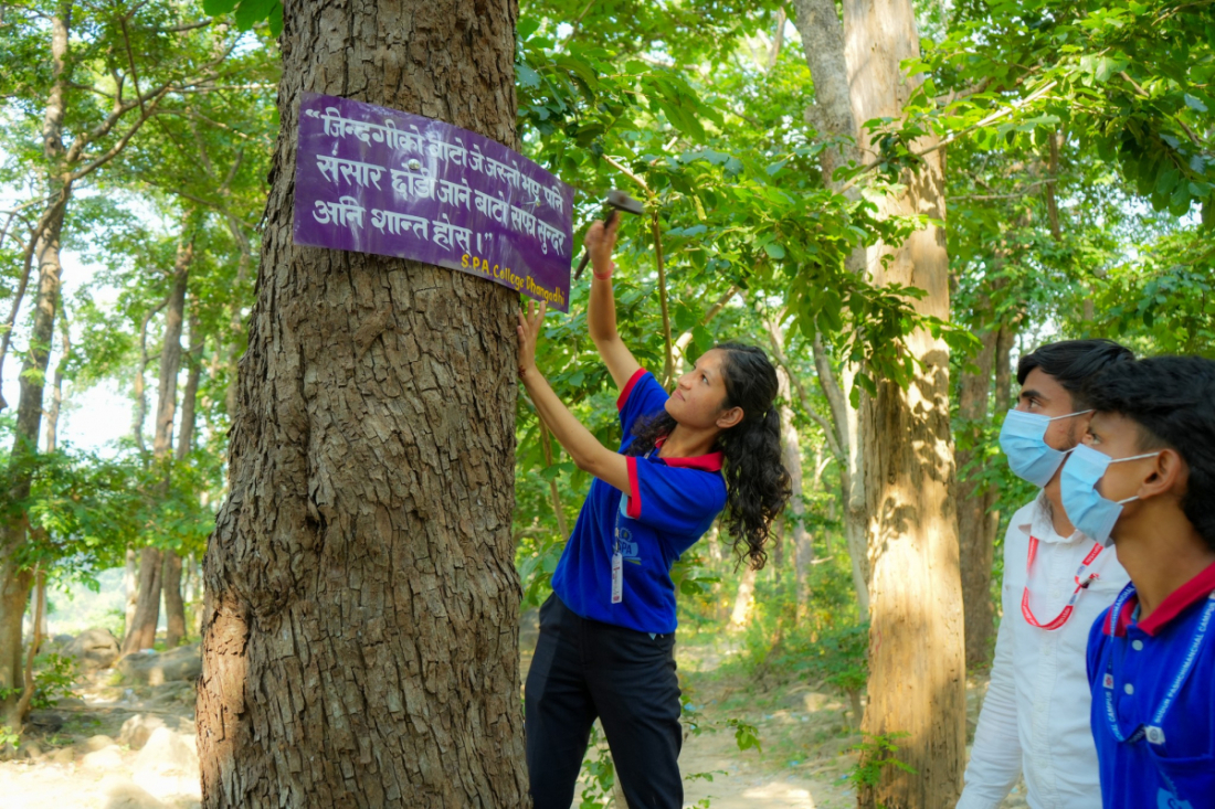 उनीहरुले विभिन्न सन्देश मुलक बोर्डहरुसमेत टाँसेका छन्।